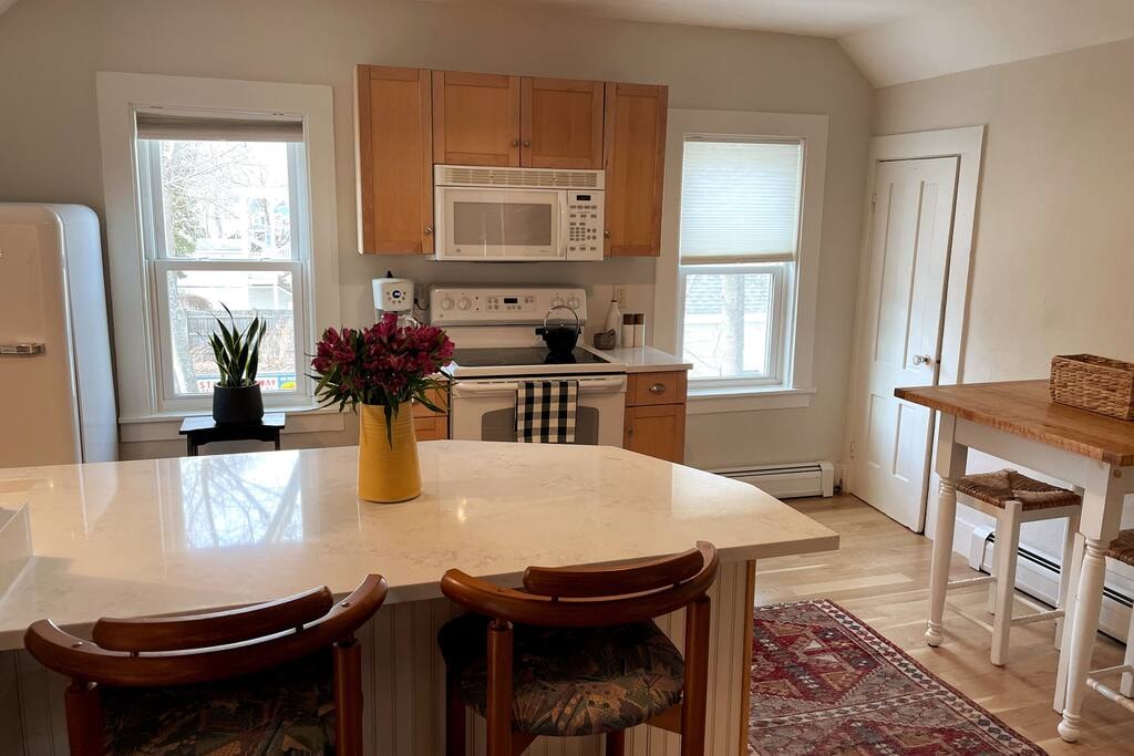 Embedded in a beautiful neighborhood in the West End of Portsmouth, this updated 2 bed 1.5 bath unit is quintessential downtown Portsmouth living. Featuring a fully loaded kitchen, plush king bed, and free 24/7 on street parking. This unit is walk-able to downtown (~5 mins), to the grocery store (~4 mins), and some of the best local coffee shops (~3 mins). Easy access to the seacoast beaches and I-95 makes this neighborhood sought after by locals and travelers alike!